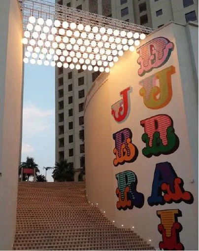 As part of a dynamic urban art initiative at The Walk in Jumeirah Beach Residence (JBR), a custom lighting installation was designed to enhance the visibility and experiential impact of a large-scale graffiti mural integrated into the pedestrian corridor.